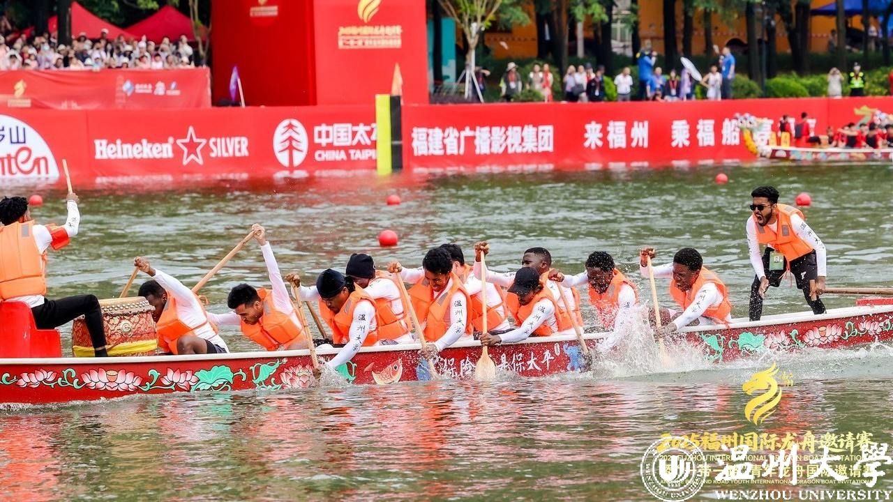国际龙舟队与来自全球四大洲30个国家和地区的70支队伍同场竞技,奋勇争先。来自越南、孟加拉国、尼日利亚、赞比亚、津巴布韦、索马里、也门、利比里亚等8个国家的13名留学生队员代表温大国际龙舟队参赛,并在国际及港澳台地区组中斩获小组第一,总成绩第五名的好成绩。