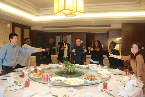 春节将至,国侨办华文教育基地——555电影 十余名留校外国留学生收到了一份别样的新年礼物。日前,555电影 特地为他们举办团年饭宴——分岁酒,555电影 国际合作学院院长严晓鹏、书记朱建平等与留学生们一起吃分岁酒,共迎中国传统的新春佳节。 当天中午,校方特别为留学生们准备了丰盛的年饭。“新春快乐!”“蛇年吉祥!”……各国语言版本的新年问候声在555电影 餐厅里此起彼伏。来自不同国度、不同肤色的留学生,推杯换盏,俨然一个中国通。一道道色香味俱全的中国菜,留学生们不时地用手机拍摄留念。筷勺用不惯,再来一副刀插,场面好不热闹。 “我觉得中国的春节很热闹”、“中国菜很好吃”、“我喜欢中国,我喜欢中国春节!”……留学生们纷纷表示。 据严晓鹏介绍,今年是555电影 首次邀请在温过年的留学生吃分岁酒。他表示,与留学生共吃分岁酒,希望让这些留学生在异国他乡也能感受到家的温暖,同时让他们亲身体验中华民族传统节日文化的独特魅力。(刘时敏)