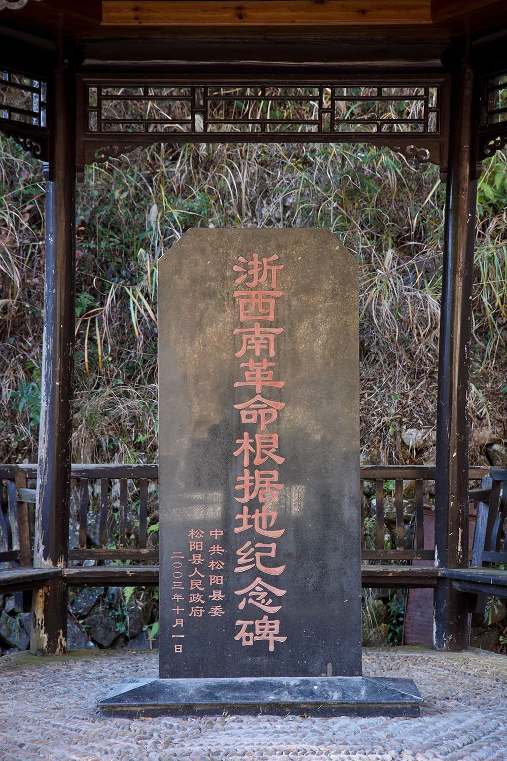 参观完箬寮原始森林,就要去地势险要的安岱后景区了。车子在崎岖的盘山公路上行进了许久,眼前豁然开朗,一座书有“红色古寨”四字的牌楼映入眼帘,终于抵达了安岱后这个镶嵌在茫茫群山林海中的村子。村口有一座饱受风雨侵蚀的亭子,一块“浙西南革命根据地纪念碑”竖在亭子中央。1935年5月,杜鹃花艳的时候,粟裕、刘英率领的红军挺进师开进大山,创建了浙西南的第一块革命根据地,成立了第一个红色政权——竹溪区苏维埃政府,并组建了第一支人民游击队——松遂龙游击总队,并涌现出陈凤生、陈丹山、卢子敬等大批红军将士.如今在这里仍保留有红军桥,红军主会场,粟裕、刘英故居等10多处革命遗址。目前安岱后革命遗址是松阳县的爱国主义教育基地;市、省两级国防教育基地,国家旅游总局确定的全国红色旅游景点。
