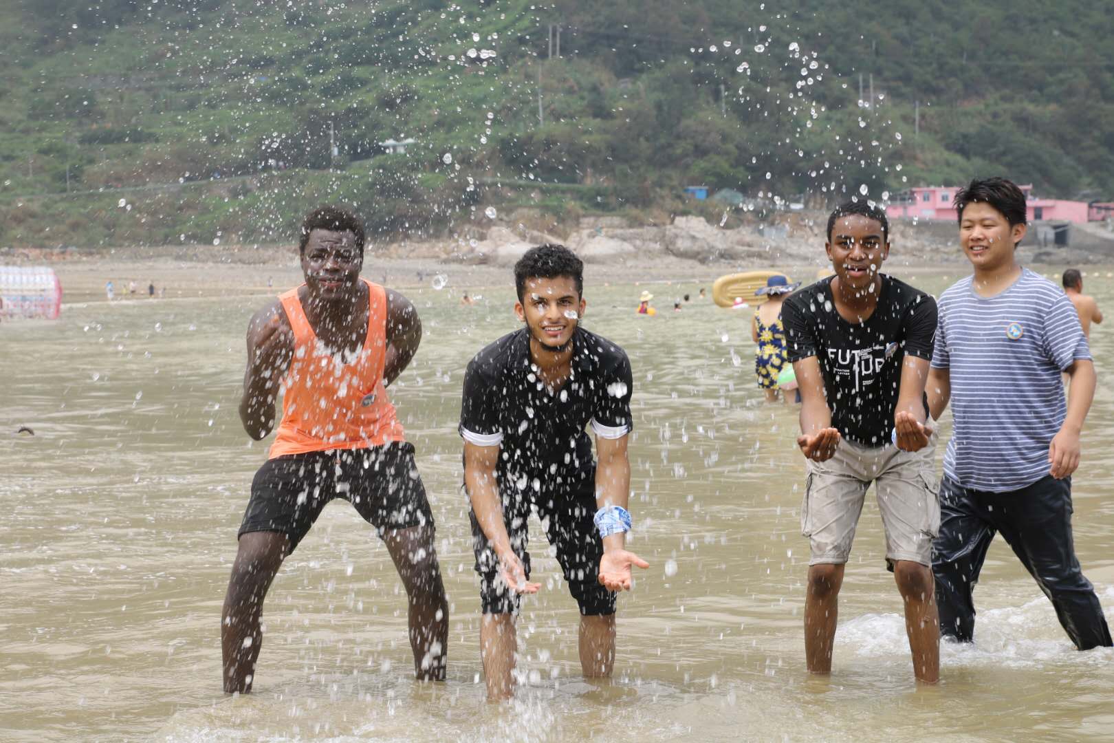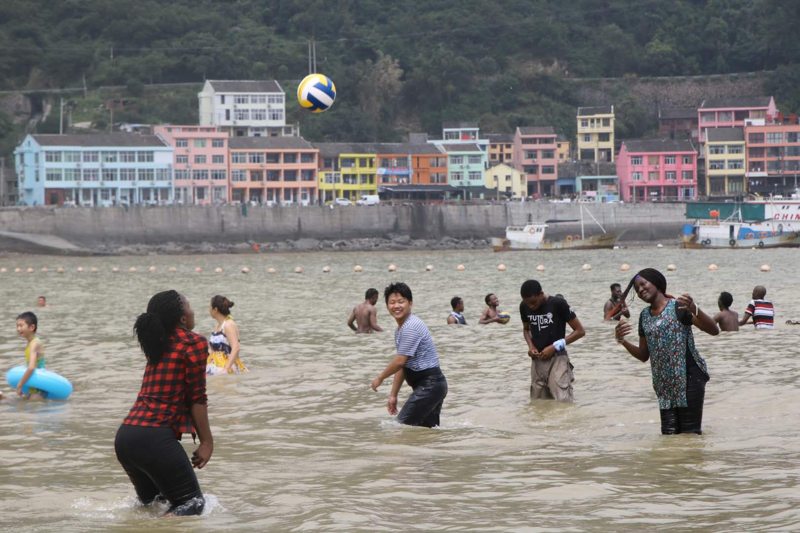 中午稍作休息后,国际学生们来到了月亮湾沙滩,体验了素质拓展活动。在沙滩边,他们开展了沙滩排球友谊赛等趣味活动。之后,国际学生们还纷纷沿着观海栈道拾级而上,欣赏海湾的美丽全景。加纳籍学生MICHAEL说:“这是一次很难忘的体验,既参观了中国非物质文化遗产,又参加了各种有趣素质拓展活动,我非常开心,也很有收获,希望被台风毁坏的具有历史标志性的建筑能尽快得到修缮,再现“世界矾都”往日辉煌。”