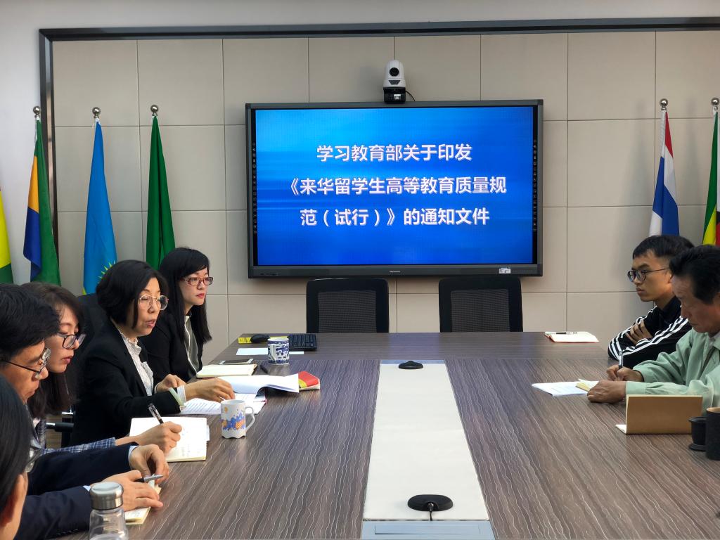 会议学习了《教育部关于印发<来华留学生高等教育质量规范(试行)》的通知文件的精神。全体教工针对人才培养目标、招生录取和预科、教育教学等方面结合实际工作展开学习讨论。555电影
