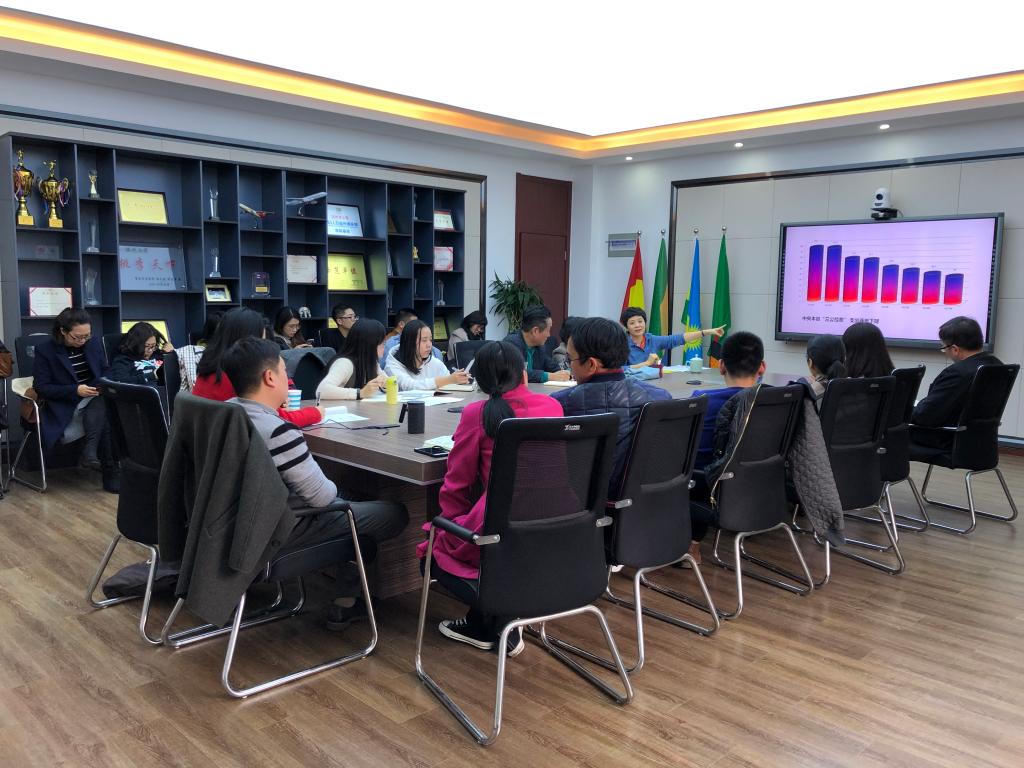 纪委办公室主任、监察室副主任陈小敏作廉洁建设教育专题讲座,学院全体教职工聆听讲座。