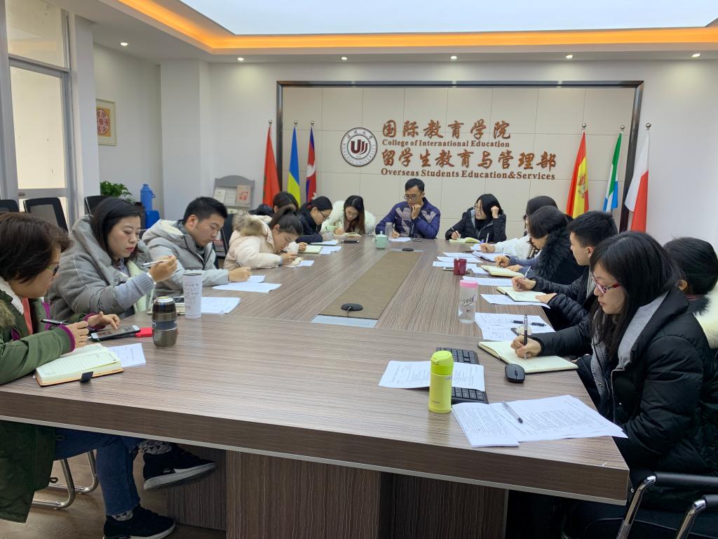 国际学生工作更上一层楼。会后,老师们还就国际学生公寓改造、学费缴纳等问题做了讨论。
