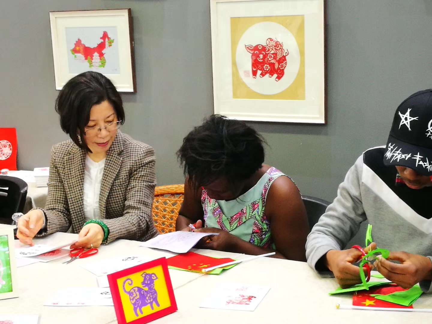 国际学生独立完成的多幅优秀剪纸作品。