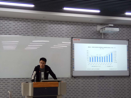 商学院的研究生徐世伟、张润强则为在座同学们带来了很多考研“干货”。用历年的考研数据让同学们直观感受考研激烈的竞争,从而建议同学们要充分地进行自我评估,合理定位,然后分享了许多备考经验和考试技巧。