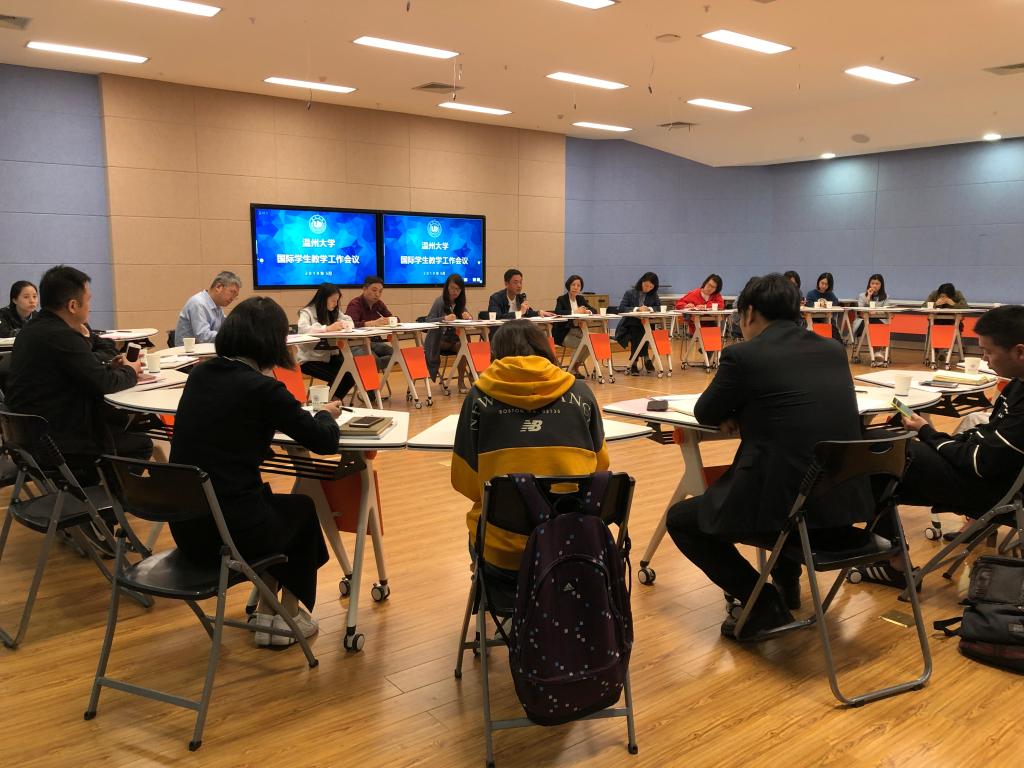 国际学生教学工作会议在岩松堂叶适厅召开,副校长钱强、留学生教育与管理部相关负责人、各专业学院分管领导、国际学生专员及班主任参加了本次会议。留学生教育与管理部主任叶苗主持会议。
