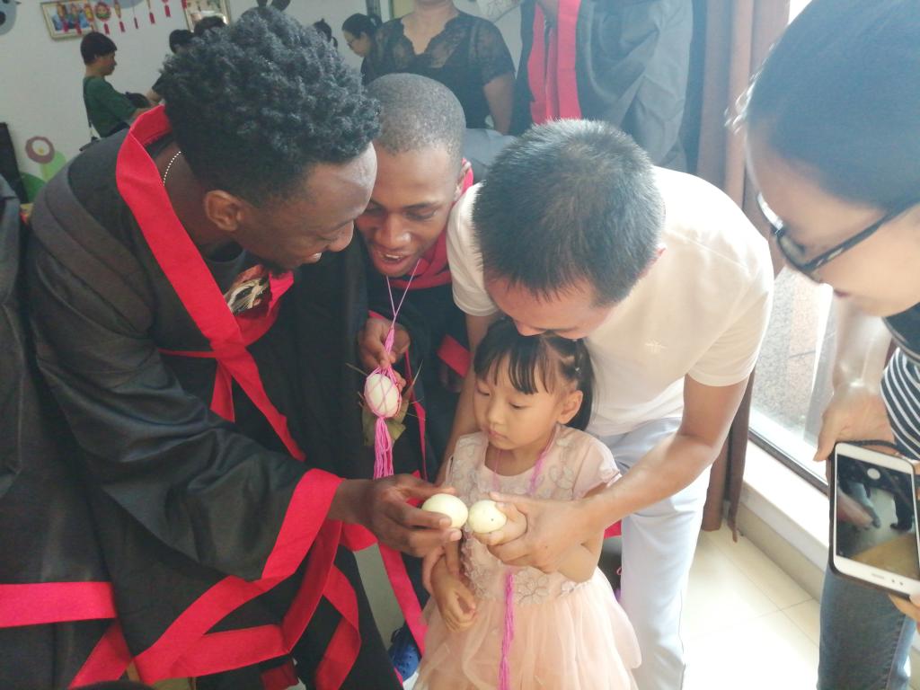 6月4日上午,国际学生走进龙湾区状元街道银龄养老服务中心参加“跨越国界的爱——外国学生走进社区之端午敬老公益活动”。来自坦桑尼亚、尼日利亚等国家的学生为老人们表演了小组唱《We Are The World》,寓意四海皆一家,携手共创美好明天。在文体互动区,国际学生与老人们一起打桌球和乒乓球,跟着书法大师学写汉语毛笔字,为老人们表演篮球友谊赛,还与老人们共进午餐,祝福老人健康长寿。此次“情系端午节,爱在养老服务中心”之行让国际学生了解了温州市养老服务情况,看到了老人们安心、舒心的环境,感受到了老人们晚年老有所居、老有所依、老有所乐的幸福生活。当他们得知舞台上表演武术的老人已经81岁高龄,依然精神矍铄时,不禁发出赞叹。2016级国际学生MUTENHWA ALFRED TAFADZWA感慨道,“今天真是个美妙的日子,感谢学校给我一次这么重要的机会,在端午节前来到这里,提醒我们要学会照顾老人,这在全世界都是一样的。”
