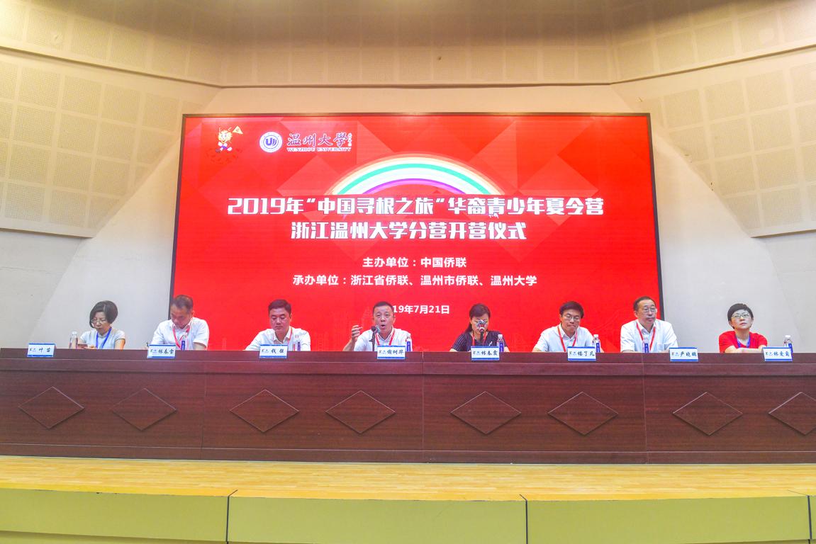 分营的基本情况。同时他也提到温州华侨发展历史及现状,以及他背后所代表的伟大温州精神。他指出,举办“中国寻根之旅”夏令营,也是深入是贯彻落实习近平总书记关于侨务工作的重要指示精神。“中国寻根之旅”夏令营的举办,为海外华裔青少年搭建了感悟中华文化、了解当代中国、增进民族认同的重要平台。最后他希望所有营员朋友沿着祖辈的足迹,亲口尝尝本地的特色美食,亲眼看看故乡的美好变化,亲自学学中华的传统文化,亲耳听听中华民族几千年来的悠久历史。