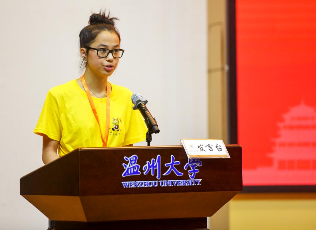最后来自德国的陈家欣作为营员代表发言。她是一位生长于德国的华裔,10年的中文学习让她对中国文化产生了浓厚的兴趣。在发言中她用流利的汉语向主办方表达了感谢,也表达了自己对此次夏令营的期望,她希望能与来自各国的营员互动交流。