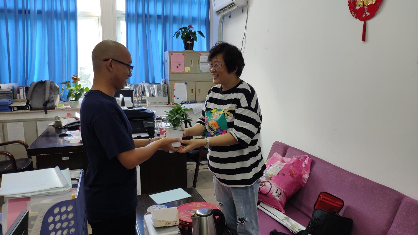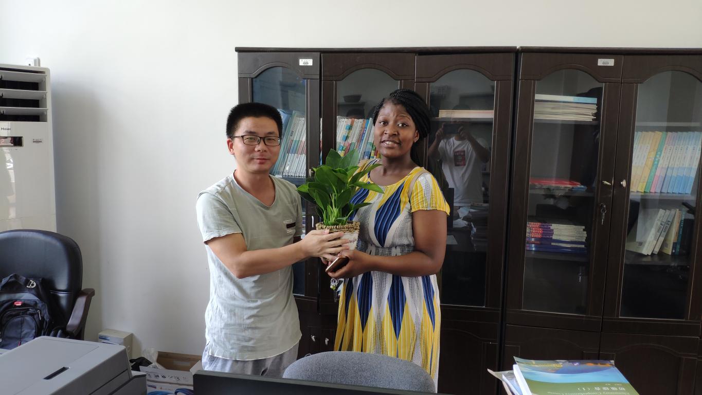 “这盆小植物能给办公室增添一分绿色,让老师多一分健康和快乐!”17航管程同学和他的专业课老师牛老师说道。牛老师告诉我们,“上课前收到同学们的祝福让我感到激动与感动”。汉语言推广教研室余老师在收到来自津巴布韦Pala同学送上的祝福与盆栽后,表示学生的肯定就是收到的最好的教师节礼物。