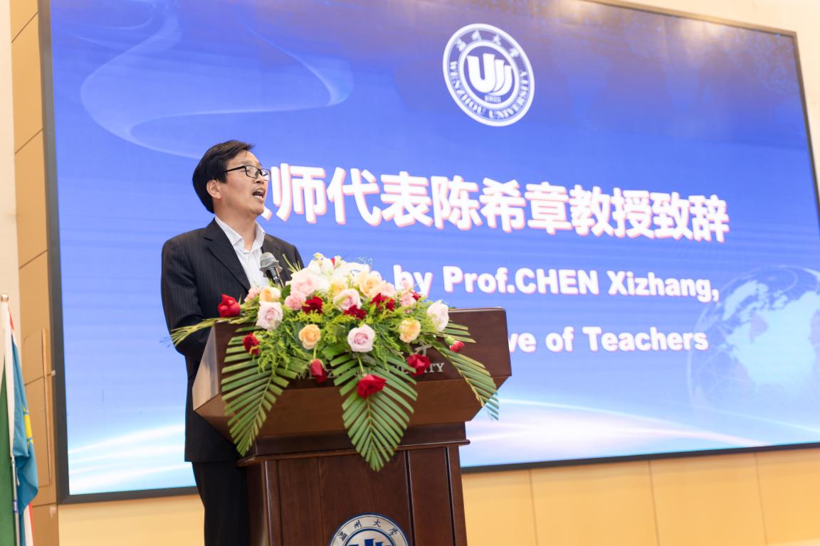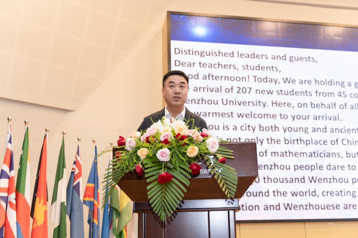 发展历史、办学特色和国际化发展现状,勉励同学们珍惜在温大的学习时光,感知中国、认识中国。他希望各位新生能够学习中国文化,用欣赏、包容、互鉴的态度看待世界上不同的文明,成为了解中国文化、胸怀宏大抱负又精通专业的中外交流使者。随后,教师代表陈希章发言,他希望新生努力学习,敢于承担责任,充实而有意义地度过温大留学时光。