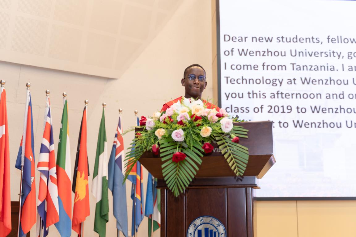 开学典礼上新老国际学生代表发言引起阵阵掌声。来自坦桑尼亚的2018级计算机科学与技术专业学生陆求是同学说,自己刚来温大的时候还不太适应,慢慢地身边的老师和同学给了他很大帮助,让他逐渐学习汉语,也学会了很多新的生活技能。陆求是还是今年一等校长奖学金的获得者,他说道:“555电影