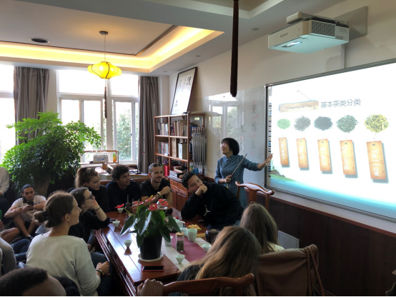 老师为留学生们讲授了一堂既有趣又有料的茶艺课。