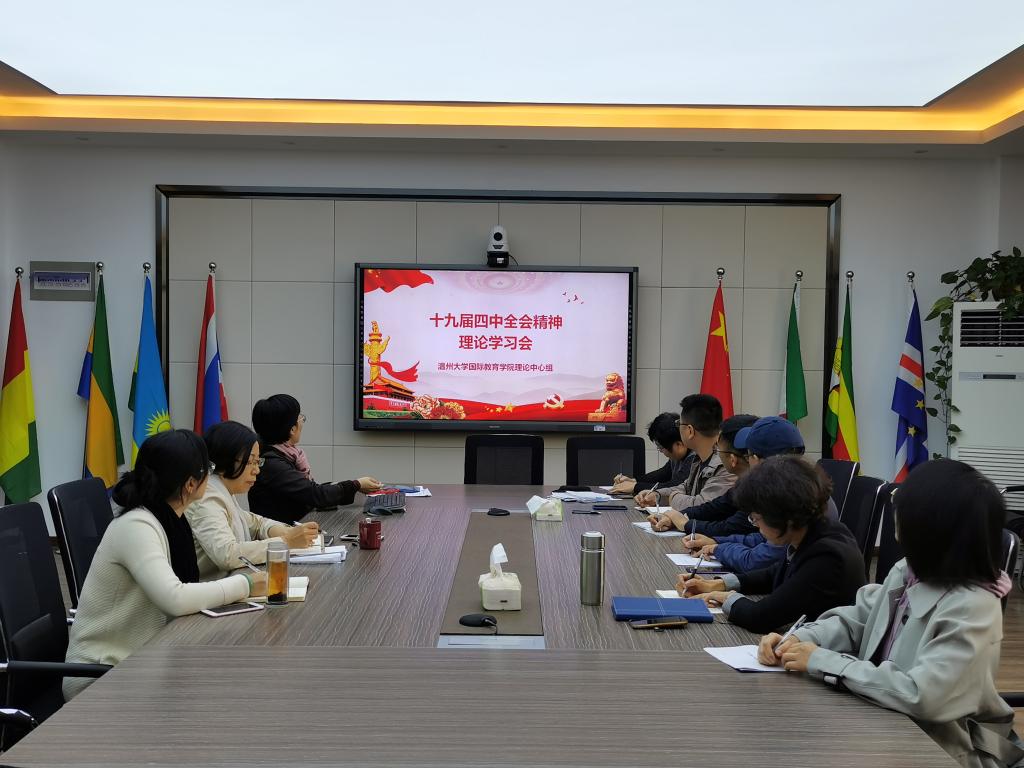 二级理论中心组在311召开学习会,学院班子成员和党总支委员参加了学习会议,学习会由学院党总支书记林爱菊主持。本次学习会集中学习党的十九届四中全会精神。