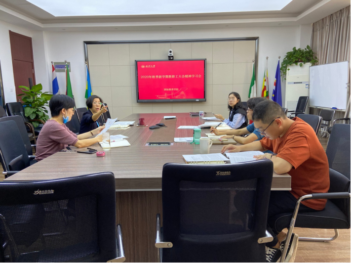 张雪萍副书记就国际生管理工作发言:努力做好国际生的收费、欠费工作,目前学院大力使用ALIPAY平台对国际生进行收费,进一步规范了国际学生的收费问题;做好2020年国际生奖学金的评定工作,奖学金的评定以2019年第一学期的成绩为评定标准,如有违纪现象将取消其奖学金;禁毒教育狠抓不懈,毛发检测一定要及时传达到返校学生,在温国际生也要接受毛发检测;妥善处理毕业生滞留在宿舍的问题。其他与会同志,分别结合自己的岗位开展分析研讨。