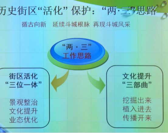 一方面宏观上给同学们呈现文化街区的昨天、今天、明天,从根本上破解文化空心化,重塑城市灵魂,微观上又提出五马街的历史街区“活化”的根本思想,保护我们“两·三”的思路,要从街区活化“三位一体”和文化提升“三部曲”两个方面进行。