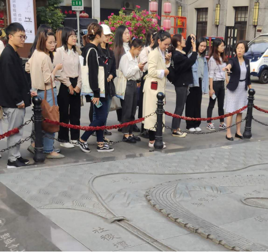 下午13:30分,“研学之旅”活动在大家的激情瞩目中拉开帷幕,由叶苗老师给大家做调研任务布置和安全提示。随后所有同学在叶副秘书长和讲解人员带领下走近街区,也为文化街区增添了一道特有的学术风景线!