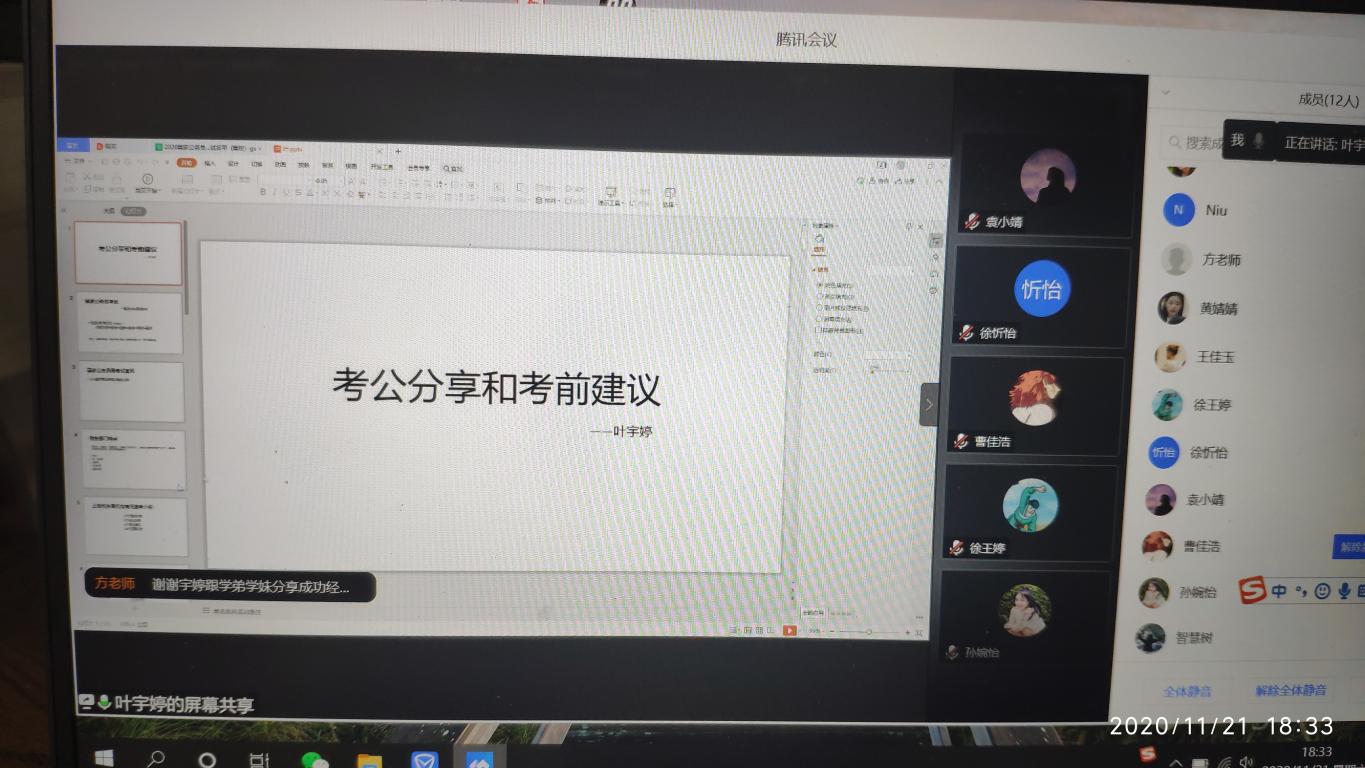 会议最后,叶宇婷同学向学弟学妹们表达了美好的祝福,祝愿他们都能在不久的将来实现自己的梦想。