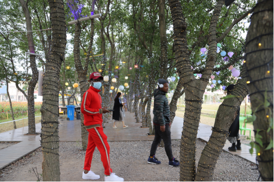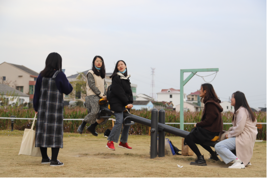 同学们参观了田园的景观长廓、观景台、游步道、露营草等设施。田间的这片花海,品种有百日菊、硫华菊、向日葵、波斯菊等品种。还有丰富的室外活动设施让同学们无不无不争先恐地排队体验。