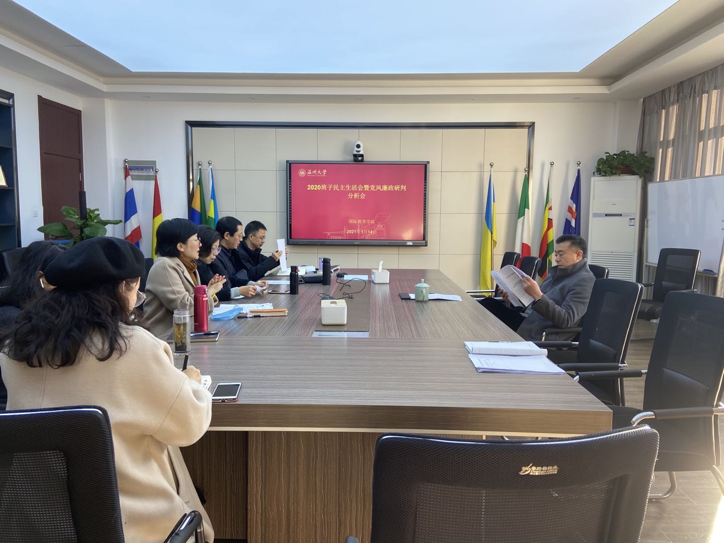 领导班子在国际楼311会议室召开2020年下半年党风廉政分析会暨意识形态分析会和班子民主生活会。学院领导班子成员参加会议,会议由党总支书记林爱菊主持。校党委委员、副校长薛伟莅会指导。