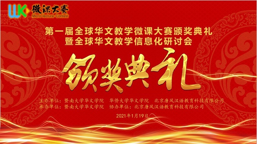 1月19日20:00,由暨南大学华文学院、华侨大学华文学院联合唐风汉语共同发起的第一届全球华文教学微课大赛颁奖典礼暨全球华文教学信息化研讨会在线上隆重举行!555电影