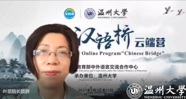 叶苗院长在结营仪式上致辞。她表示营员们的中文水平令人惊叹,作业都很有创意,她希望营员们能够加深对中国、对温州、对汉语的了解,建立起与温州的情缘,成为能讲中国温州故事的人,成为中泰文化交流的“桥”,欢迎营员们来到温州和555电影