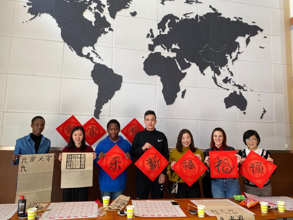 联合后勤处、保卫处、国资处、学生处、研工部等部门,为假期留校学生提供吃、住、学习、运动及医务等保障服务,开展了系列暖心活动,例如准备新年大礼包,写“福”字、贴春联、挂灯笼,举办国际象棋、乒乓球、桌球等比赛,提供心理咨询服务和线上学业指导,让这些留学生感受到新春的喜庆和团聚的温暖。
