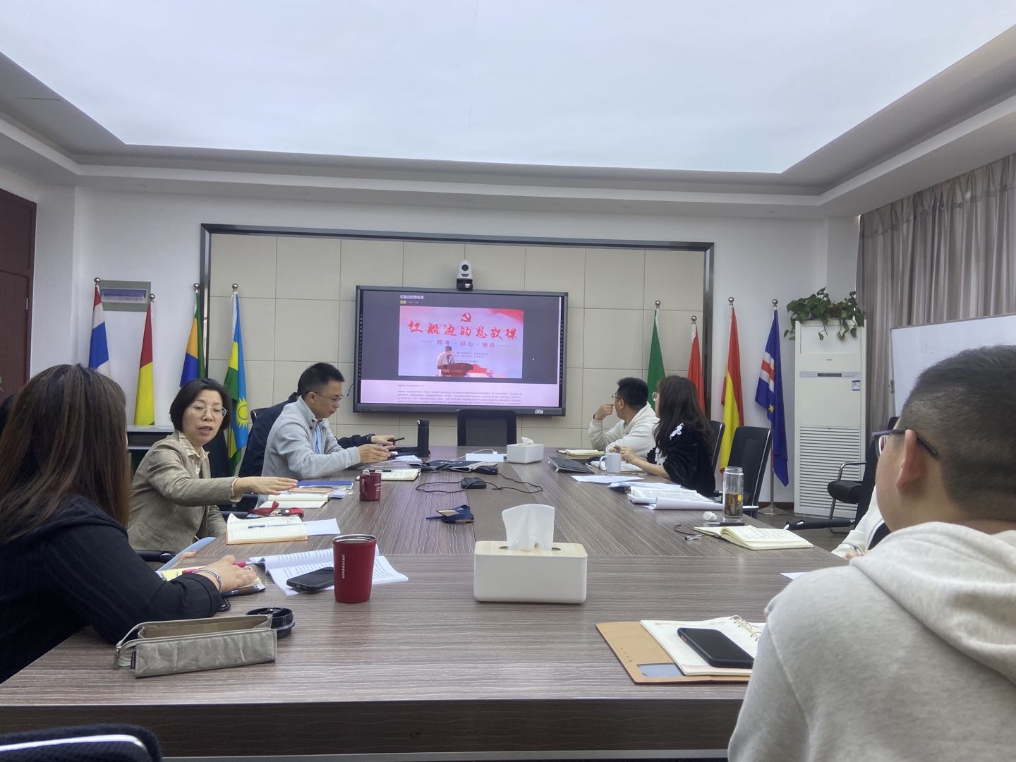在北校区国际楼311会议室召开二级理论中心组学习会议,学院班子成员、党总支委员、党务秘书、教研室主任、科长参加了会议,党总支书记林爱菊主持。