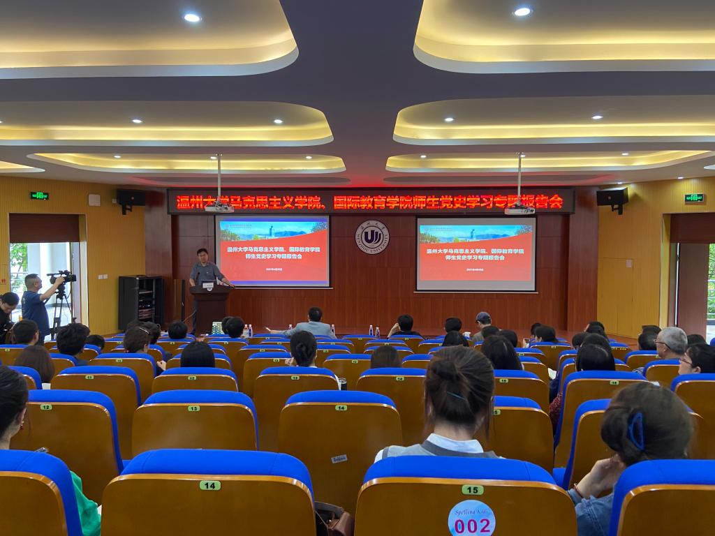 、马克思主义学院师生济济一堂,在国际楼203会议室召开师生党史学习专题报告会,马克思主义学院段智峰博士讲述“解读长征与长征精神”,王柏民书记主持。