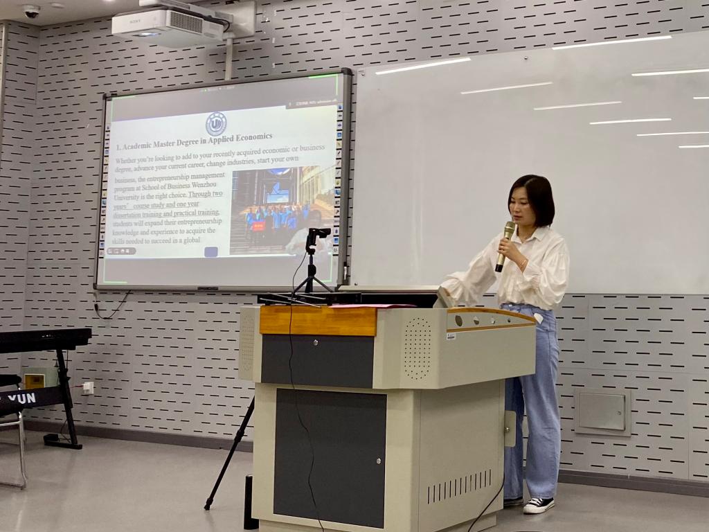 目前已开设英语授课硕士专业的学院有七个,此次说明会为意向申请人安排了其中三个学院的专业介绍,这些专业为本年度新增专业或历年热门专业。 商学院王露老师、电气与电子工程学院张正江老师、计算机与人工智能学院胡杰和许铮铮老师等老师应邀参会并现场详细介绍了悉心准备的项目信息。 参会人员们仔细聆听了老师们的介绍,对各自意向申报的硕士专业有了更直观的认识。
