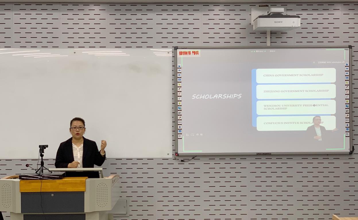随后,留管部招生科池轶文老师就申请硕士项目的注意事项进行介绍。 池老师结合自己多年招生工作审核的实战经验,给出学生申请材料准备和提交的建议,同时对学生特别关心的奖学金问题也做了细致说明。