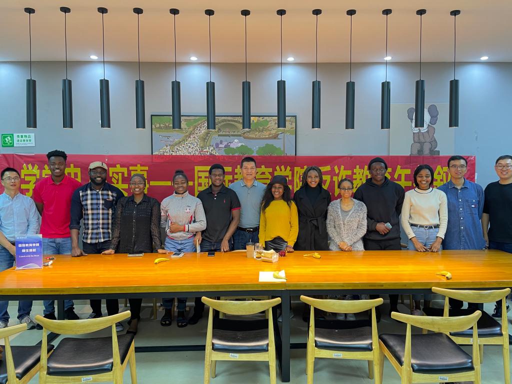保卫处处长孙安梭与9位国际学生代表面对面交谈,并解答学生关于校园安全的疑问。
