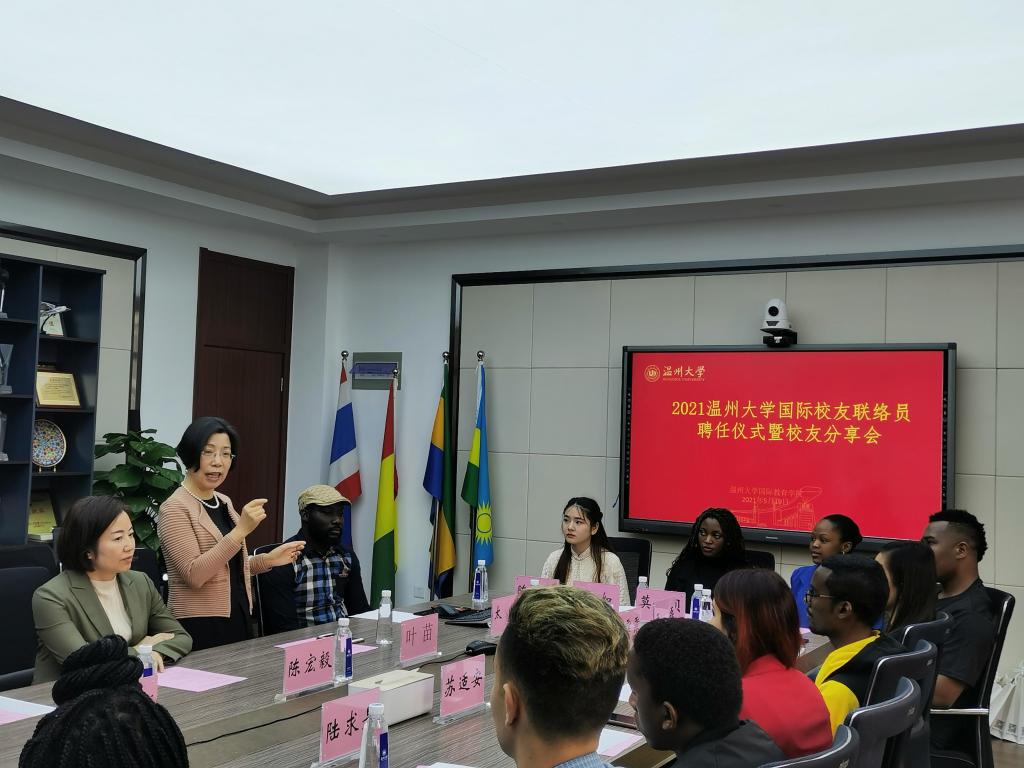 给我这个机会,我非常喜欢待在温大。我有很多计划,有很多想学的东西。我的专业是国际贸易,我在这里认识了很多国家的同学,我很喜欢,这有利于我以后工作的发展。”来自埃塞俄比亚的田阳明说:“我来中国之前,对中国的了解全来自电视,对中国人有很大的误解。来了温大之后,我发现中国人热情好客,对外国人非常的友好,是一个愿意与世界各国交朋友的国家。在未来,我会把我的留学经理分享给更多的朋友。”来自意大利的苏适安说:“来温大以后,我的中文进步了很多。之前,我像是井底之蛙,对世界其他国家一点都不了解,来了温大之后,对世界有了更多了解。温大和意大利的关系很好,温州和意大利的关系也很好,我会促进意大利和温州的进一步交流。”来自坦桑尼亚的陆求是说:“老师对我们很关心,假期也会给我们安排活动,关心我们的学习和生活。我们从老师身上学习到了爱学习爱工作的生活态度。当上联络员之后,我会做好相关工作,推荐同学来温大学习。”来自土库曼斯坦的哈利勒说:“感谢老师们给我这次机会。来中国之前,我对中国的了解并不多,来了之后对中国的传统文化,生活环境有了了解,也喜欢上了这里。毕业之后,我想尽自己所能促进祖国和中国的经贸往来关系。”来自津巴布韦的青瑞还不太会说中文,她说:“来温大学习开阔了我的眼界,我还要去看看世界。我看到其他同学能流利的说中文,很羡慕。如果懂中文,我就能更了解中国。我必须好好学中文,这不是为了别人,而是为了我自己的发展,感谢各位老师提供的机会。”