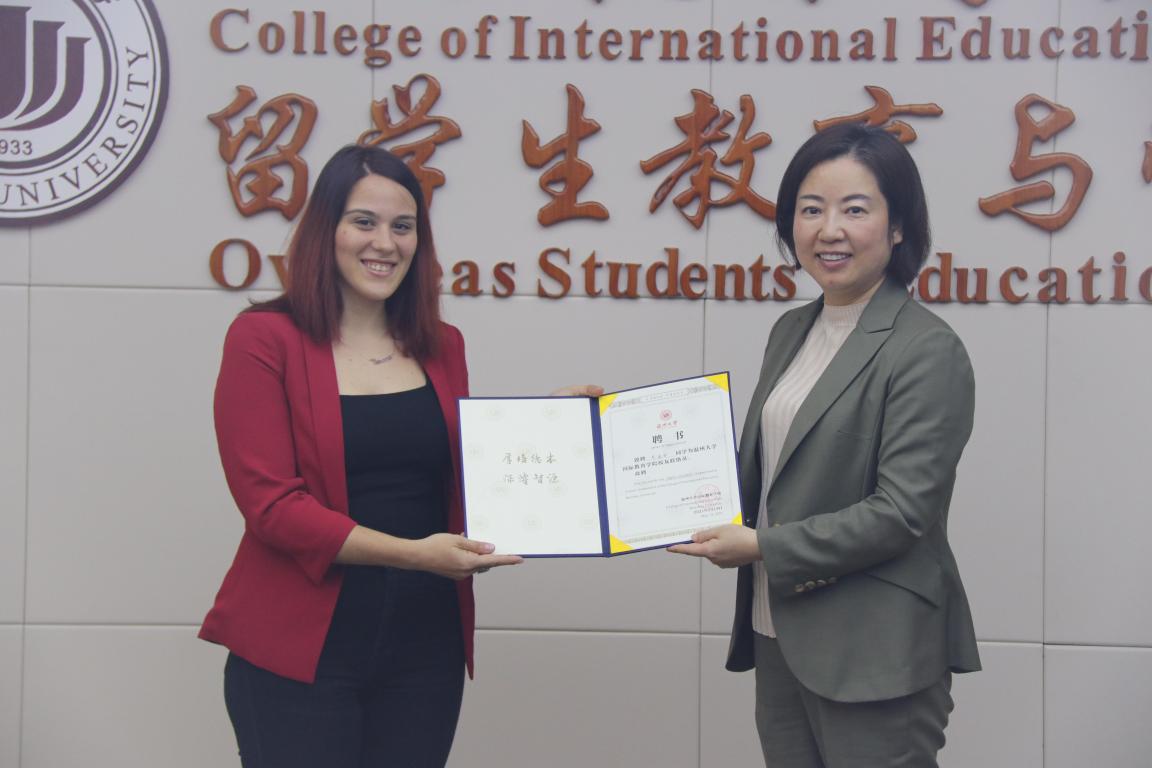 紧接着,陈宏毅主任为各位国际校友联络员颁发了聘书,这是母校对他们在校期间各项表现的认可,也是母校对他们给予的厚望。