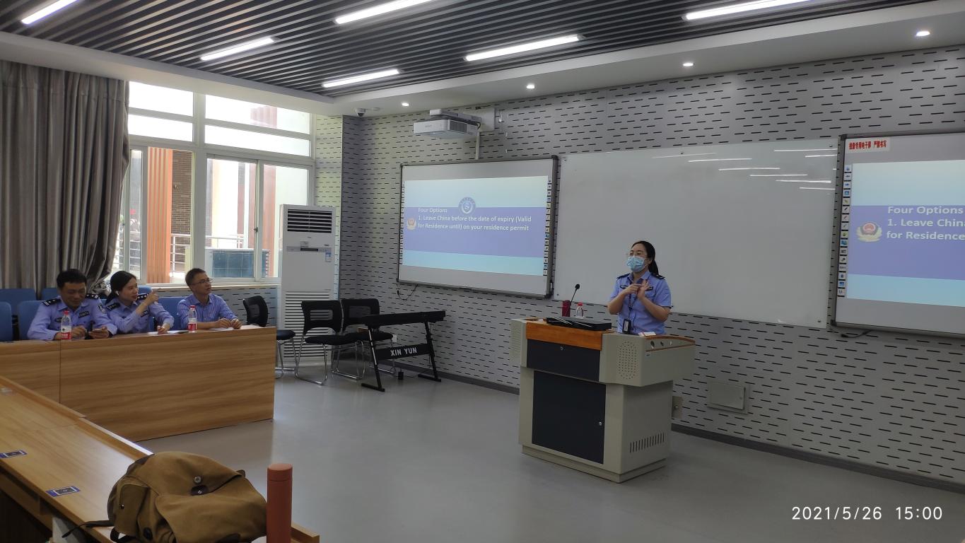 国际学生“政策法律宣讲进校园”专题讲座在3-201成功举办。本次讲座由瓯海区出入境管理大队民警郑剔主讲。温州市瓯海区出入境管理大队大队长张海敏、民警陈小菲、555电影