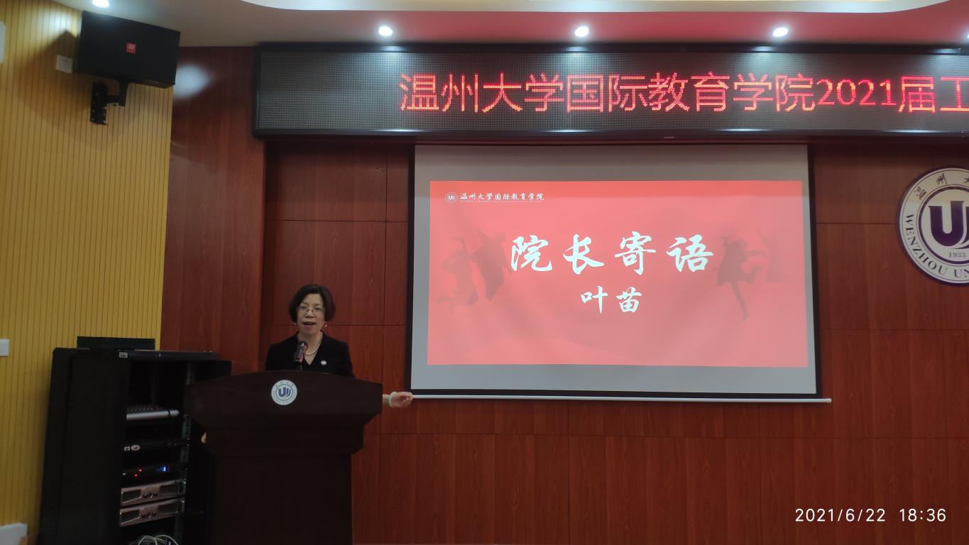 典礼在庄严的国歌声中拉开帷幕。“同学们在今后的人生道路上要继续秉承求学问是,敢为人先的校训精神及国际视野、中华情怀的院训精神,继续在接下来的人生旅途上继往开来,勇攀高峰”院长叶苗的深情致辞,赢得毕业生们的阵阵掌声。