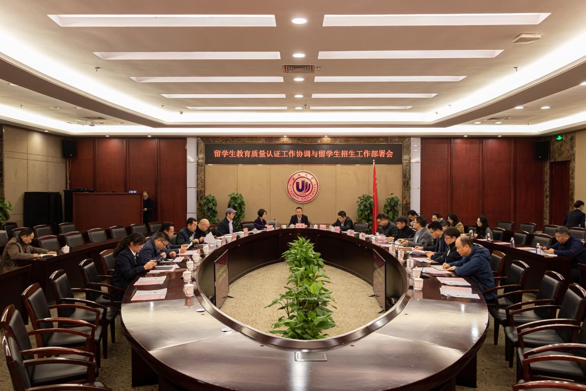2021年11月30日,学校来华留学生高等教育质量认证工作协调与留学生招生工作部署会在岩松堂白鹿厅举行。副校长王舜主持会议,相关职能部门负责人和相关学院院长、教学副院长、国际学生专员参加会议。