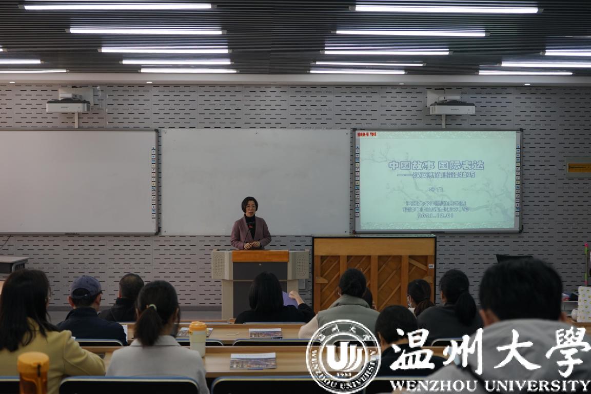 首先院长叶苗为师生们作《“中国故事.国际表达”英语新闻的写作与翻译》报告。