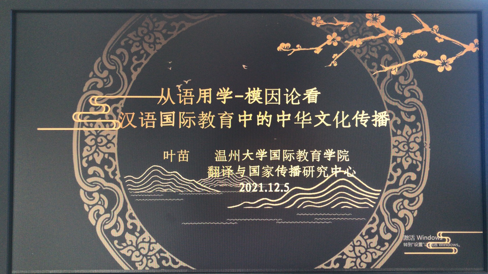 叶苗教授作相关主题演讲。主旨报告的题目分别为:“V起来”的语义分化、“N水果+人”的概念整合与语义建构、话语的分层与自我监控、汉语国际教育中的文化传播。各位教授从更高层面阐释了汉语本体及汉语国际教育的价值,为汉语国际教育学科建设和发展提供了更多的新视角,现场学术氛围浓厚,师生获益良多。