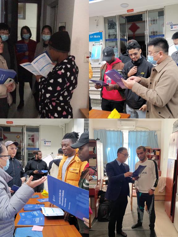 国际学生招生政策,把招生简章发放到国际学生手中,现场讲解,进行了一场别开生面的主题党日活动。