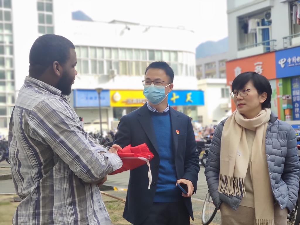 12月22日支部党员们在党总支书记林爱菊带领下奔赴留学生宿舍D区,走进寝室,向国际学生宣传555电影