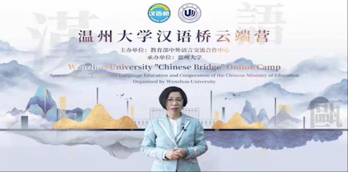 叶苗院长在结营致辞中热烈祝贺本次“汉语桥”线上课程圆满结束,总结了本次“汉语桥”活动的总体情况,对于学员们的学习情况给予了高度肯定,称赞学员们学习认真、作业有创意、对于汉语学习高度热爱。最后叶院长给学员们提出了建议并发出邀请,希望他们在课程结束之后也能继续保持良好的学习习惯,不断练习,不断进步,邀请营员们有机会能来中国深造,感受美丽温州,品味中华语言文化的魅力。