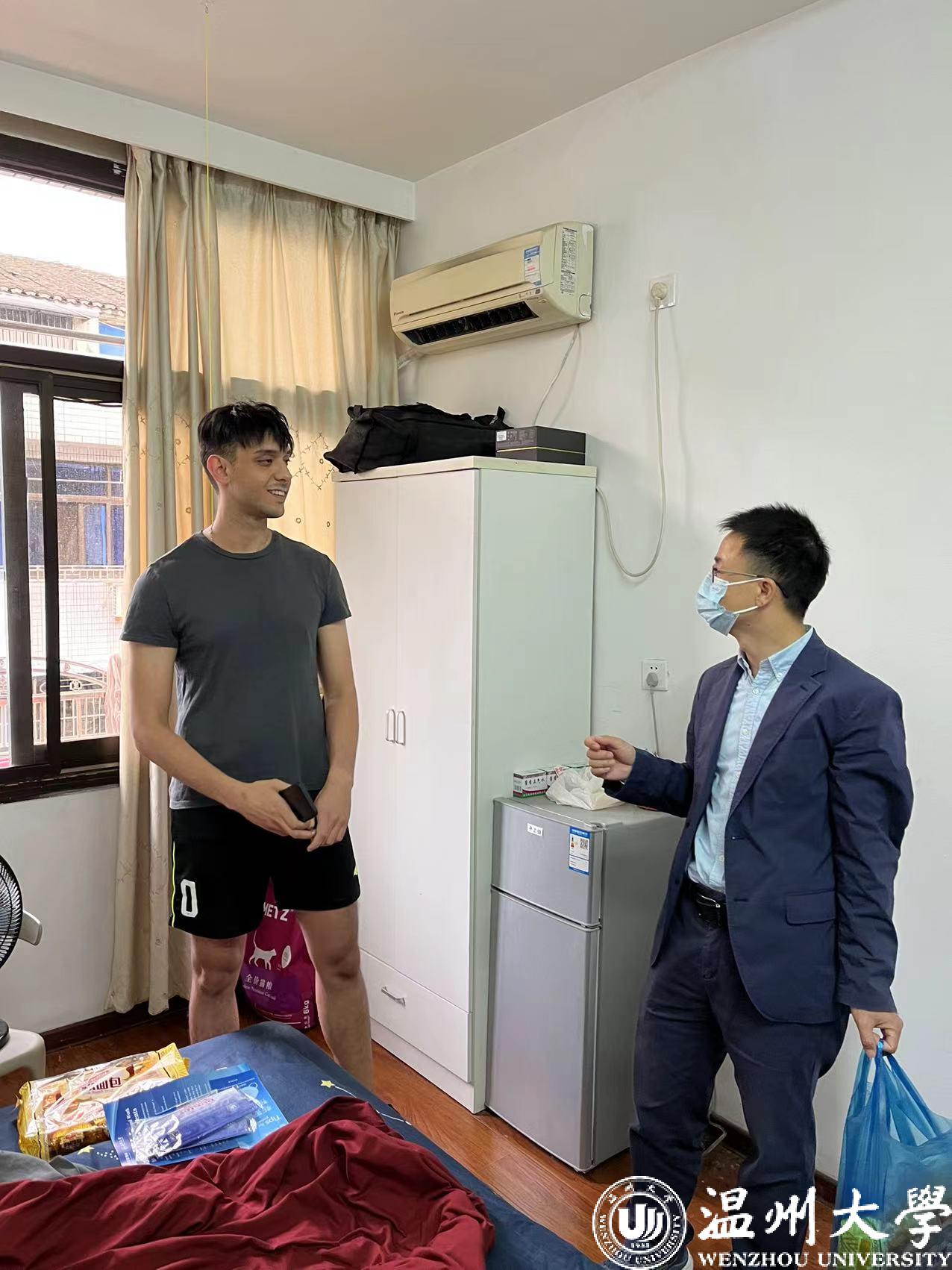 方建晓副书记一行为校外住宿的国际学生送去防疫物资、生活用品、防疫须知和安全手册,与他们进行了亲切的交谈,详细了解他们的生活学习情况,叮嘱他们严格遵守学校和地方疫情防控管理规定,做好自身防护,强调“非必要不离高教园区”。