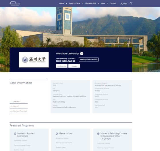 根据中国教育国际交流协会的安排,各院校的线上直播宣讲是此次线上展活动的一部分。参加线上展的有来自全国的118所大学和31所职业技术学院。院校同时通过该展会提供的线上平台,采用文字、图片和视频的方式展示学校信息。直播回放和学校的项目信息展示将保留至2022年底。