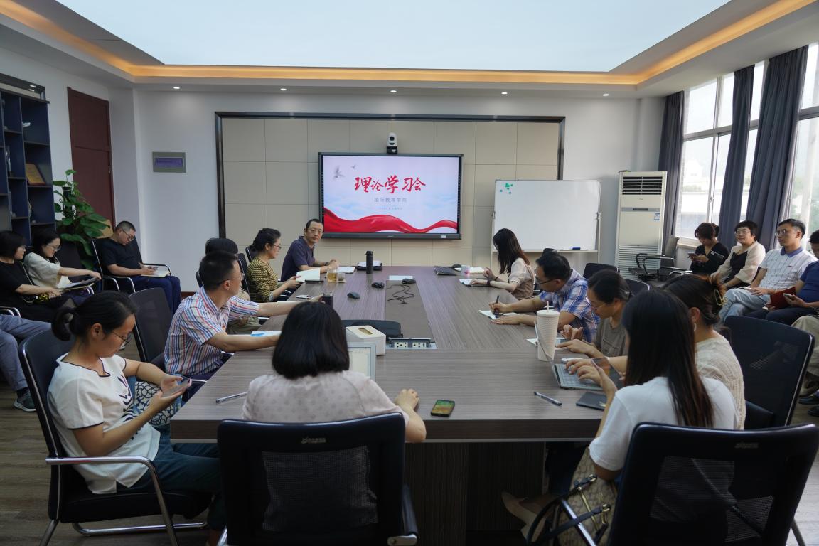 全院教师在国际楼311会议室召开教工理论学习会议,党总支书记林爱菊主持。