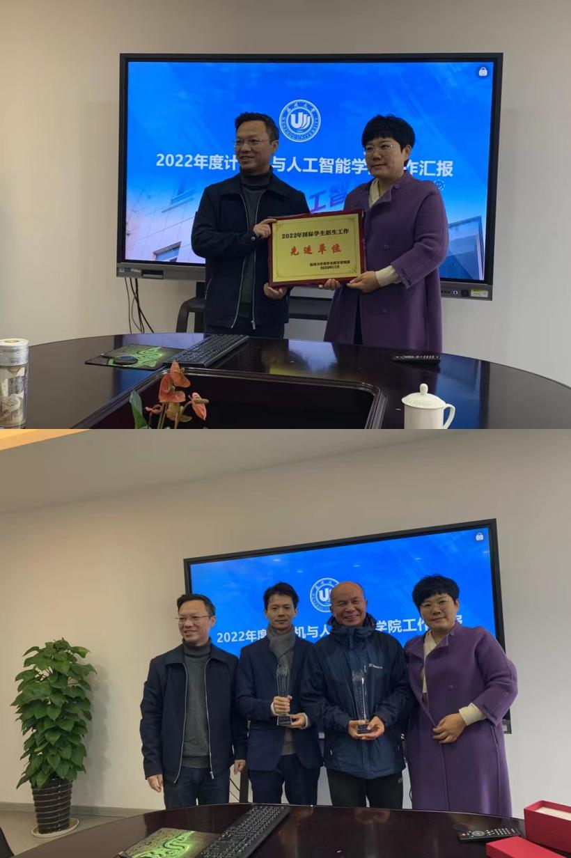 2022年国际学生招生工作先进单位,授予张潮力老师为555电影
