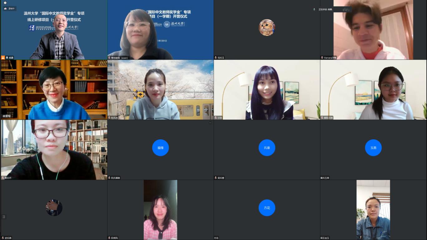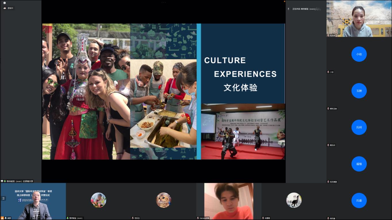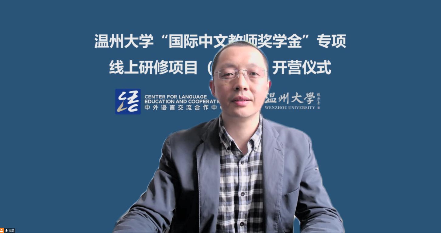 汉语国际教育的实力与优势,阐释了学院“得天下英才而育之,培养世界温州通;融温大英才于全球,赋能温州通世界”的办学宗旨和传统,鼓励学员们珍惜线上学习机会,并欢迎学员们访问温州、留学温大。