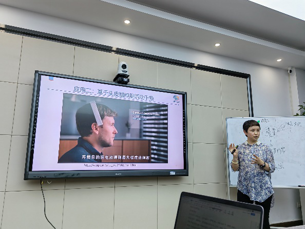 随后,院长李颖洁院长应邀做题为《脑电技术及其在语言学习研究中的应用》的学术讲座。李院长从三方面:引言--神奇的脑电波、如何“用”脑电技术研究以及EEG语言学习相关研究向我们详细阐述了脑电波研究的历史和应用。图文并茂地向我们展示了基于头皮脑电的脑机接口迅猛发展以及基于头皮脑电脑活动干预的蓬勃发展。由此过渡到了脑电技术在二语习得中的作用。最后还向同学们介绍了一些编程的软件,使同学们如获至宝。讲座后,宋院长就讲座的内容进行了精彩的点评,同学们也就自己感兴趣的问题进行了提问。