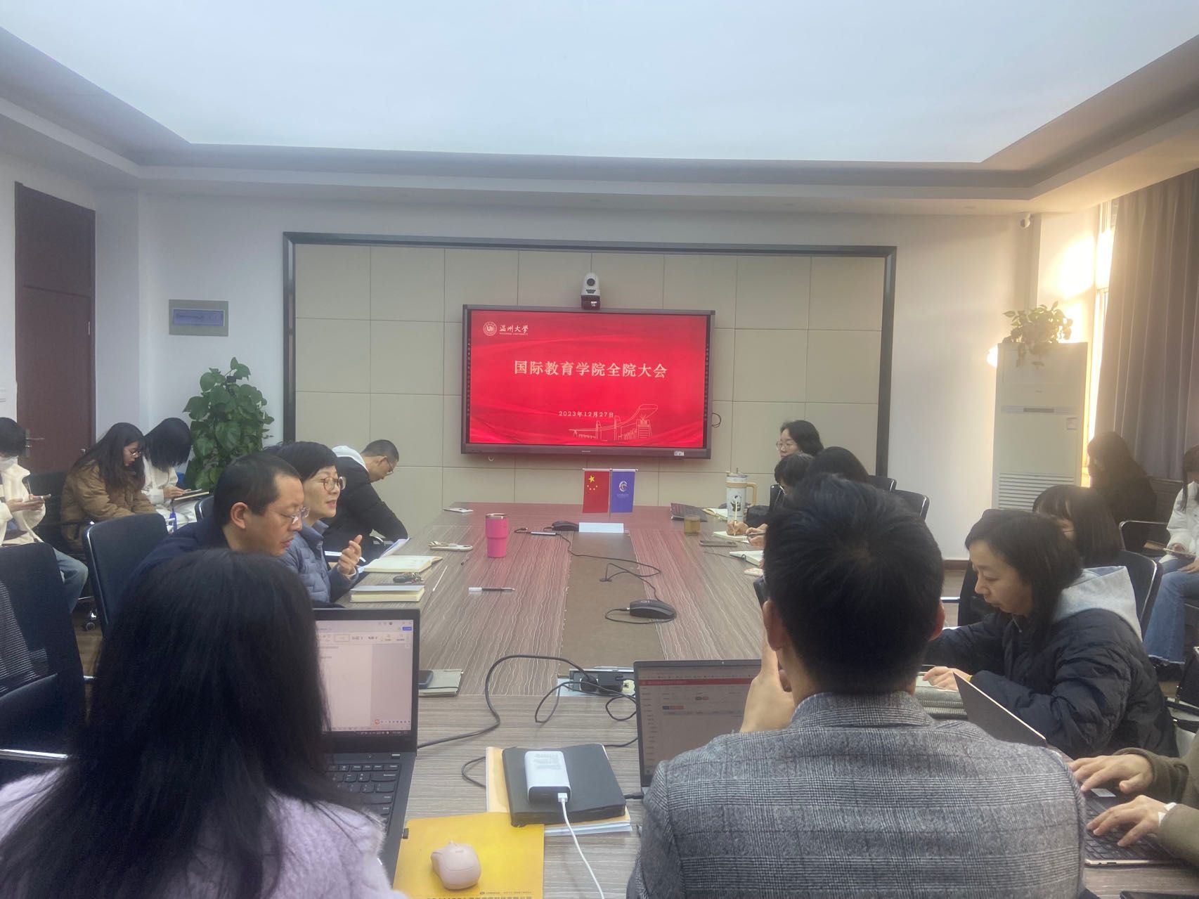 全院教师在国际楼311会议室召开全院教职工大会,党总支书记林爱菊主持。