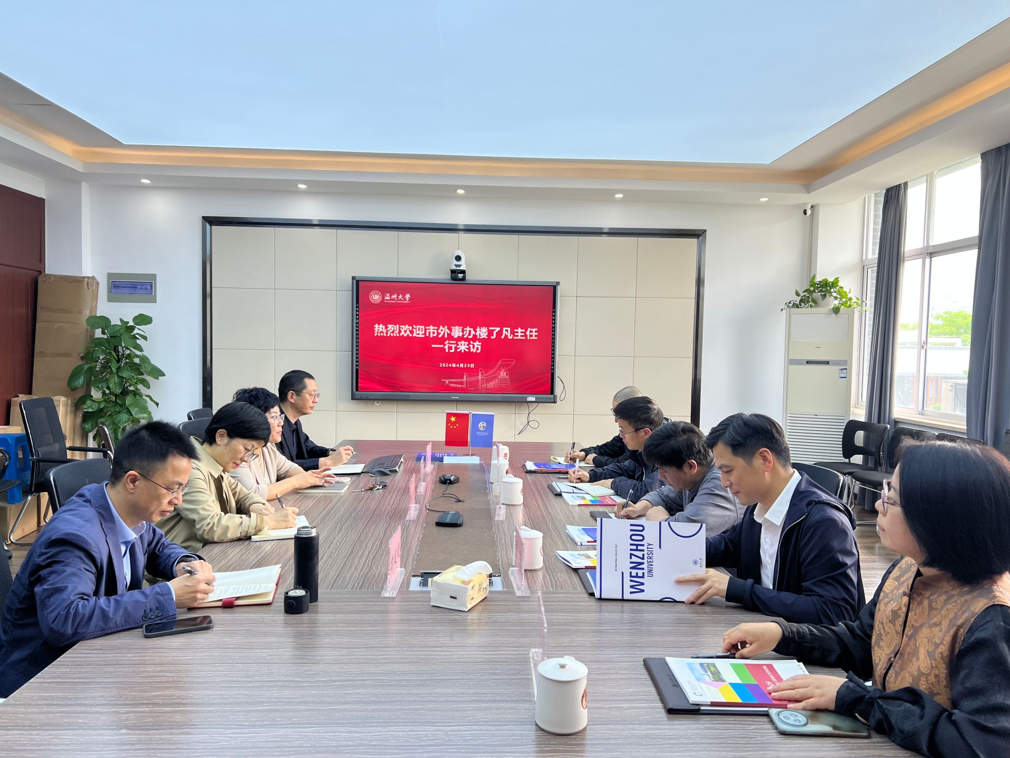 4月23日上午,温州市外办副主任楼了凡一行访问555电影